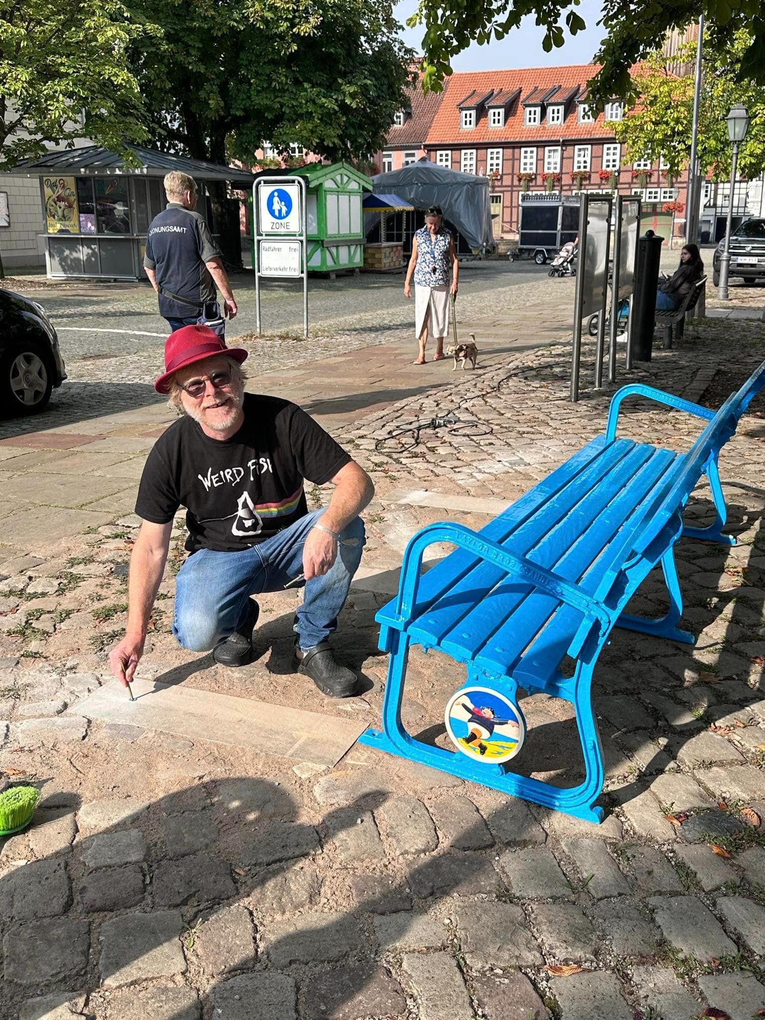 An art project in Bad Gandersheim, initiated by British artist John Byford from Skegness, has expanded with a new sky-blue bench installed next to the previously established English telephone box. Both pieces are painted in Byford's favorite color, sky blue, symbolizing the connection between the sky and sea, a theme he continues to explore.